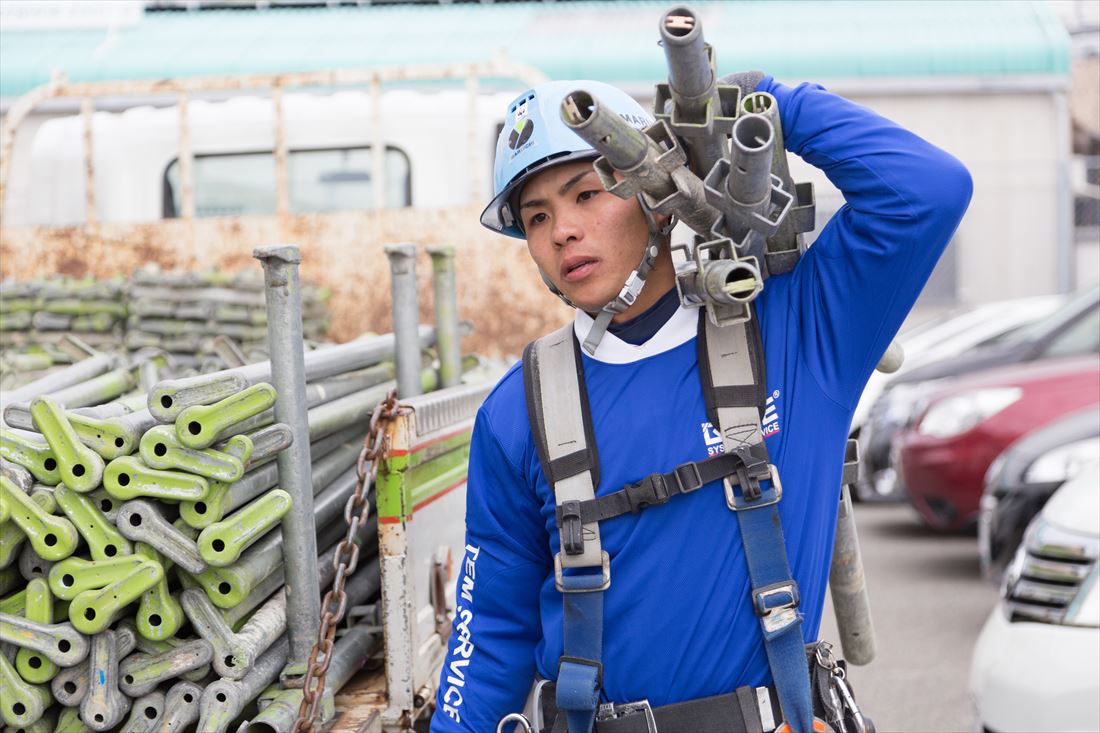 当社では、足場の組立・解体をメインに行っており、これから鳶職人になろうと思っている若者は、ほとんどの技術を学ぶことができます!
